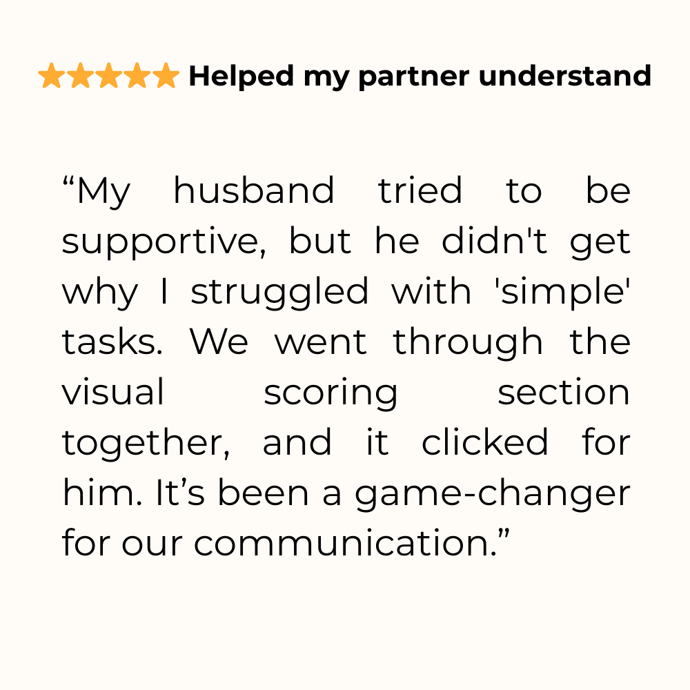 Yes! In fact, we encourage it. The assessment in "Do I Have ADHD?" is designed to bring to your doctor's appointment. The Blueprint includes relationship scripts to help you explain your brain to partners, friends, and colleagues so they can support you instead of judging you.